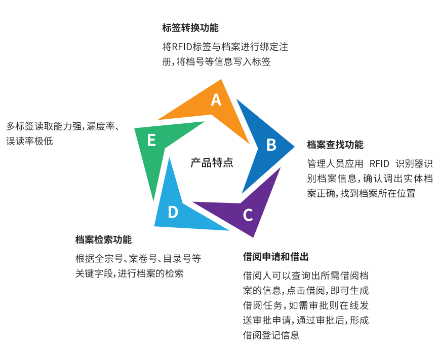 1、标签转换功能:将RFID标签与档案进行绑定注册,将档号等信息写入标签。