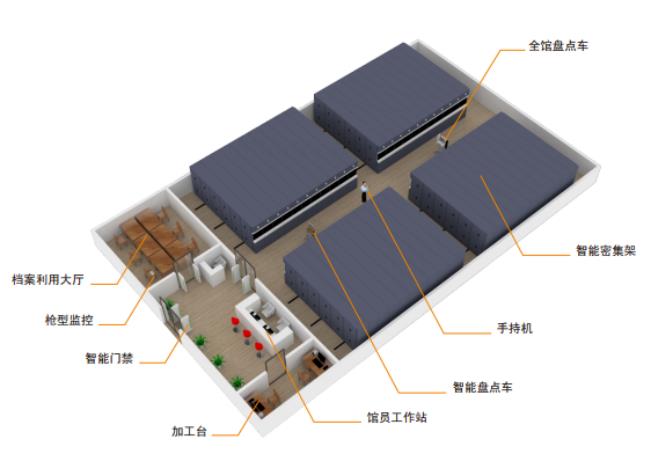 系统深入档案资料日常的存储、查询、上架、调阅、回库、安全防护等具体业务,在档案利用的各个环节中使用RFID技术,对粘贴有RFID标签的档案数据的非接触式、多文件、快速采集、实现档案的在线监控、快速定位查找、高效的批量盘点、动态路径跟踪等功能通过与报警系统,视频监控系统的联动,实现对档案非法授权带出、未按批次调档,非法调档、存储环境异常等状况,提供语音声光报警、图像抓拍等功能,从而实现档案管理的数字化、自动化、高效化与智能化。