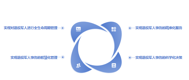 利用大数据技术、聚类分析、关联规则、智能优化等数学模型和算法深度挖掘退役军人事务管理和信息服务过程中的各类问题,分析问题原因,为各级退役军人管理机构和服务机构提供决策支撑,充分挖掘与发挥数据的应用价值,构建数据集成、数据管理、数据决策体系,为领导及各级工作人员的决策更加科学合理。