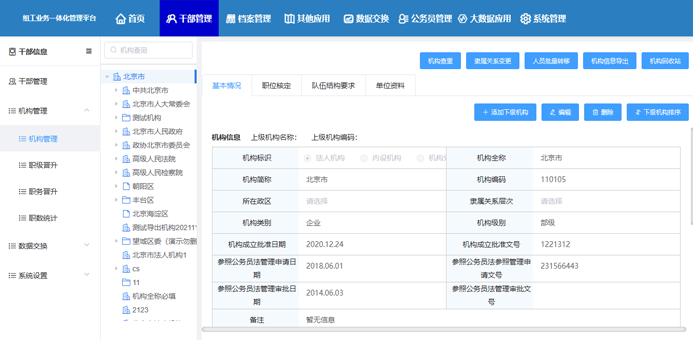 公务员综合管理信息系统业务以干部基本信息为基础、以干部人事制度、区域定位为出发点,涵盖干部信息管理、信息查询、决策分析、职数管理、干部培训、干部监督等业务,着力解决干部管理中查找符合任职条件的干部难、制作任免表格工作量大、对职位配置最新情况难于准确掌握、查阅档案不方便等常见难题,同时避免档案磨损、遗失、信息泄密或被篡改等风险。使管理实现网络化、电子化、无纸化,减少干部管理人员的重复劳动,极大提高工作效率和管理水平。