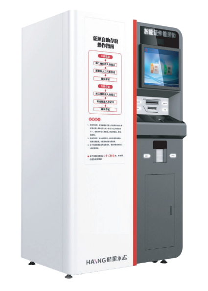 智能取证自助终端是一款集网络、软件、电子、电气、机械工艺为一体的自动化和智能化设备,可以实现公安管理部门对出国(境)证件管理的自助化水平,满足证件自助存取的应用场景。