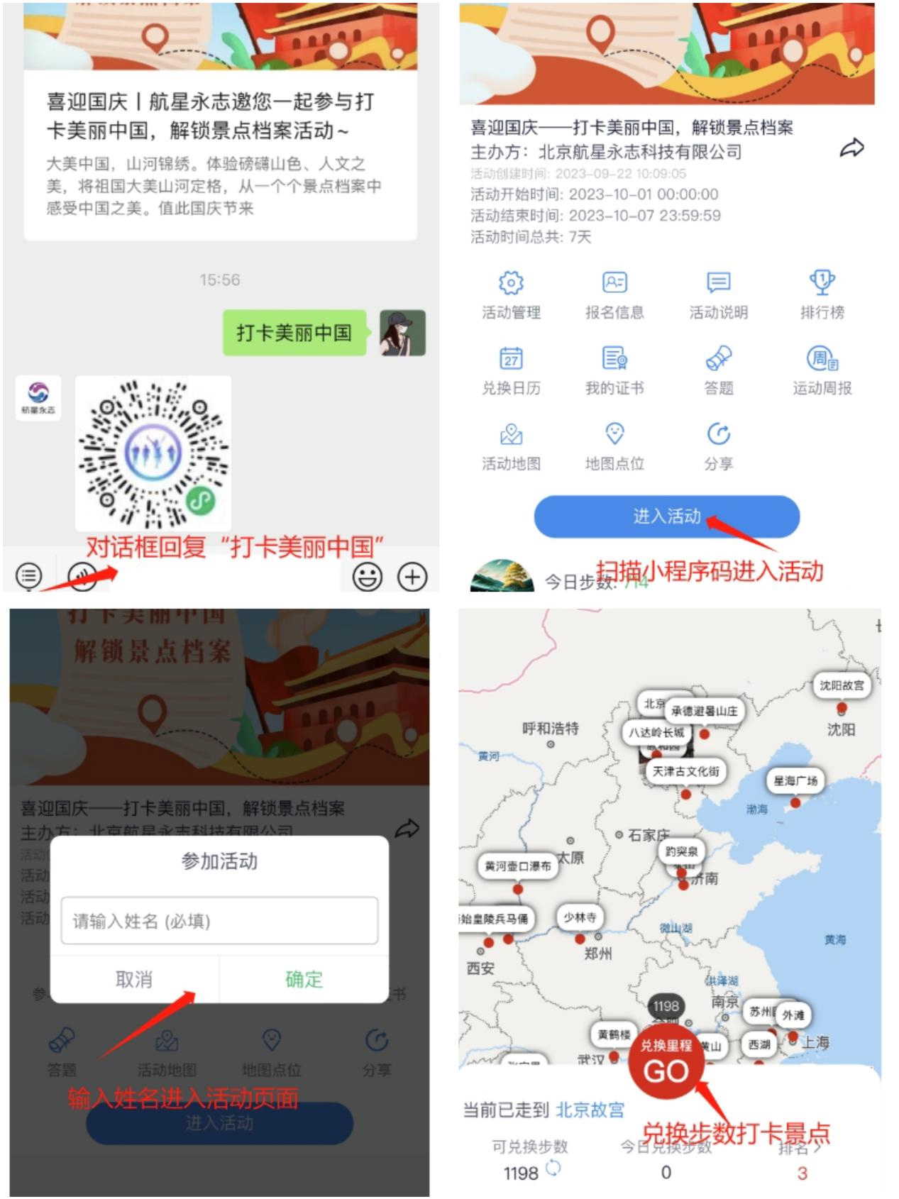 2. 活动周期7天,每日需登录活动小程序兑换微信运动步数打卡景点,完成相应景点答题。
