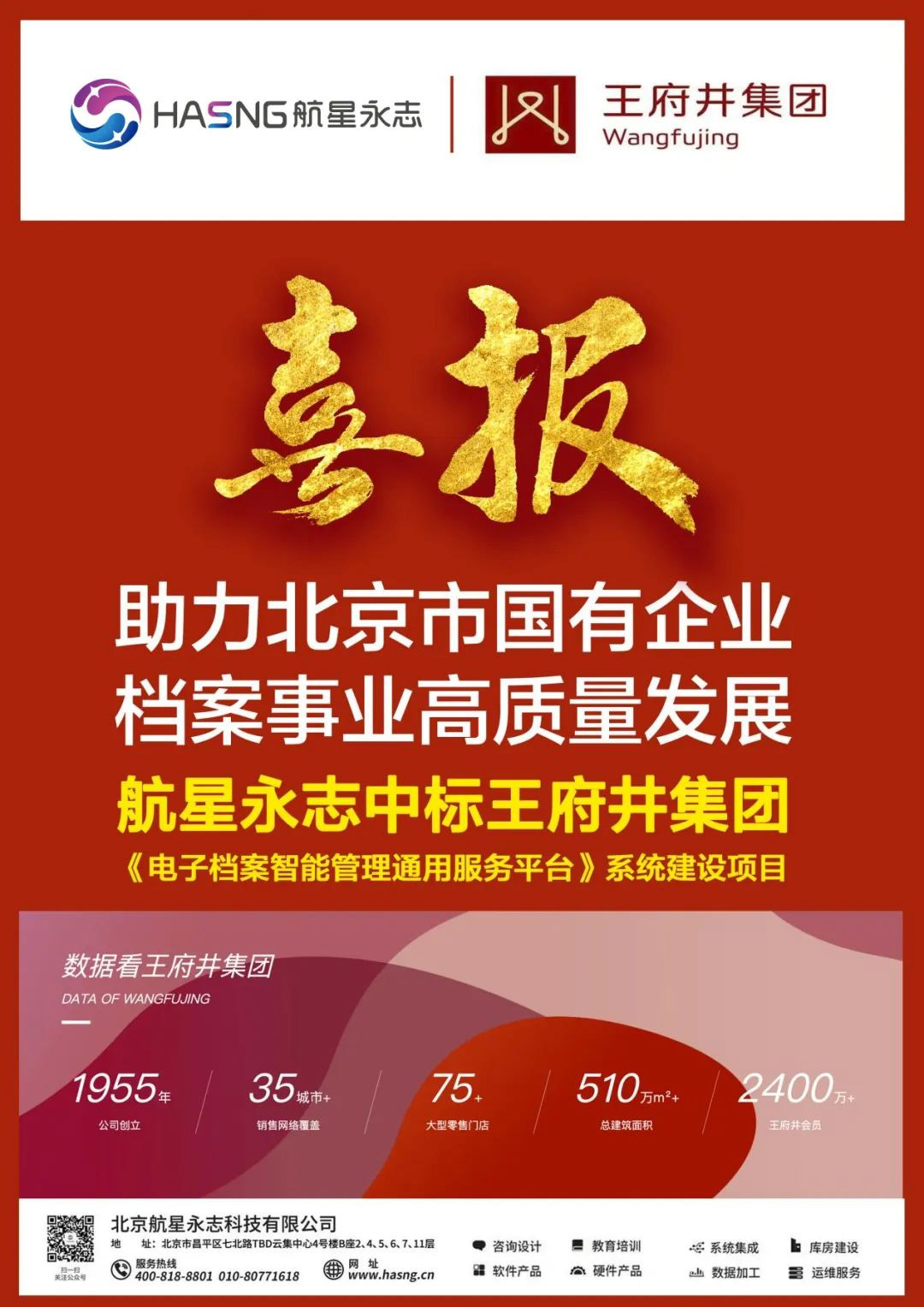 近日,航星永志依托电子档案智能管理通用平台成功中标王府井集团档案管理系统建设项目,助力北京市国有企业档案高质量发展。王府井集团作为国内最大的零售集团之一,也是深受中国消费者喜爱的民族商业品牌,坚持深耕零售主业,持续完善零售生态链,推动百货、购物中心、奥特莱斯、免税等多业态的融合发展,有税+免税的双轮主营业务驱动,自营业务、线上业务两大经营能力赋能各零售业态优质发展,全力打造以顾客为核心、线上线下融合互通的商业新模式。