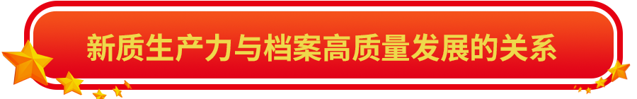 通过科技创新、产业升级和绿色转型,新质生产力已经在实践中形成,并展示出对经济社会高质量发展的强劲推动力、支撑力,而档案工作,尤其是经济科技档案工作在国家经济科技工作中发挥着重要的基础性支撑性作用,既忠实记录经济科技发展历程,又直接为经济科技发展服务。立足新时代,加快档案事业高质量发展是支撑国家治理体系和治理能力现代化的核心要义和必然要求。在新征程上,找准档案工作服务经济社会高质量发展的着力点和落脚点,不断强化“教育、科技、人才”在推进新时代档案事业高质量发展中的基础性、战略性支撑作用,以高质量档案工作不断为新质生产力发展增添新活力,同时,新质生产力也正为档案事业发展注入新动能。
