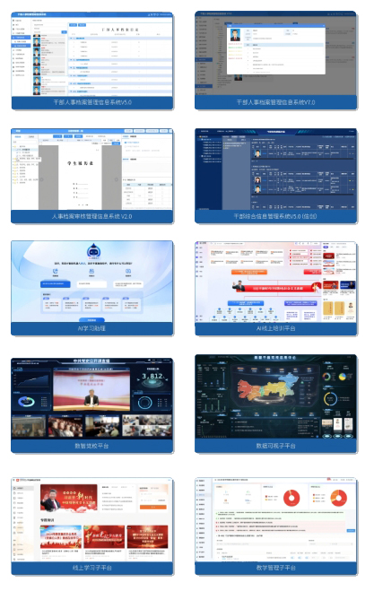人事信息业务:涵盖干部人事档案咨询规划、干部教育、人才培训、制度建设等,完成组工行业业务全覆盖。通过建设线上人事云平台,结合线下人事信息服务,为客户提供人事全生命周期服务,目前共有90+款软件,30+个解决方案。