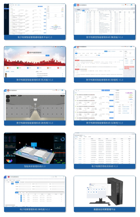 智能设备与库房业务:涵盖采集设备、档案管理设备、库房环境管理、无人库房设备、智能存储设备、智能协同设备、智能证件管理、数据保全设备、档案利用设备及其他耗材等。目前共有35+款软件,100+款智能化硬件,10+个解决方案。