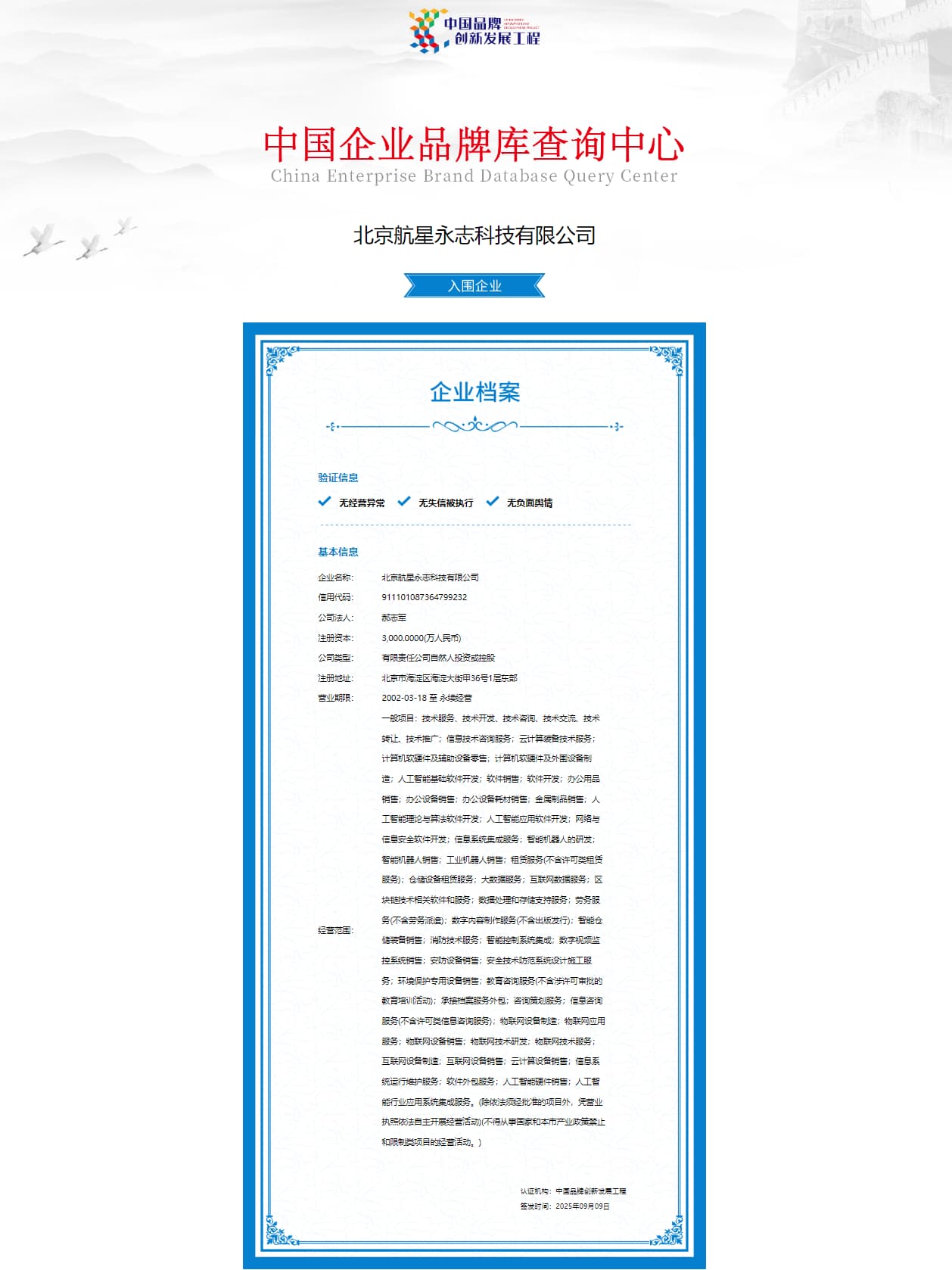 此次成功入围,充分体现了航星永志在创新能力和品牌竞争力上的卓越表现,彰显了公司在新时代的品牌精神与使命担当。未来,航星永志将继续以高质量创新创造,助力品牌强国建设,为中国数字经济与实体经济的融合发展贡献更多力量。