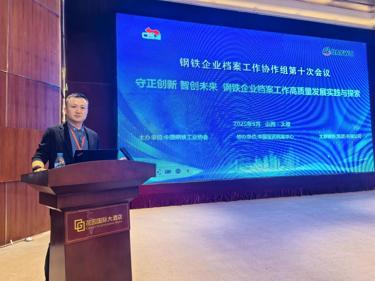 2025年9月25日至26日,钢铁企业档案工作协作组第十次会议在山西太原成功召开。会议以“守正创新 智创未来,钢铁企业档案工作高质量发展实践与探索”为主题,吸引了众多行业专家与企业代表参与。航星永志副董事长郭彦军与上海区域负责人徐鹏应邀出席,并围绕档案管理创新与数字化转型路径,同与会嘉宾进行了深入交流。