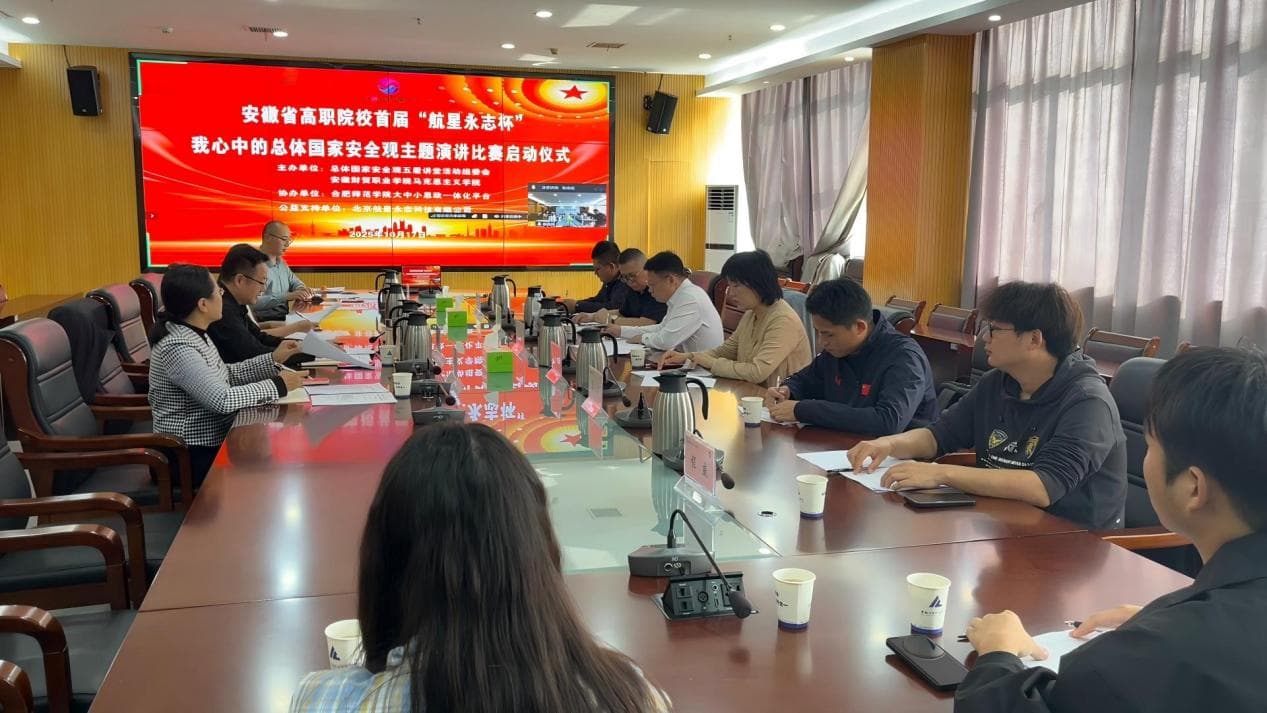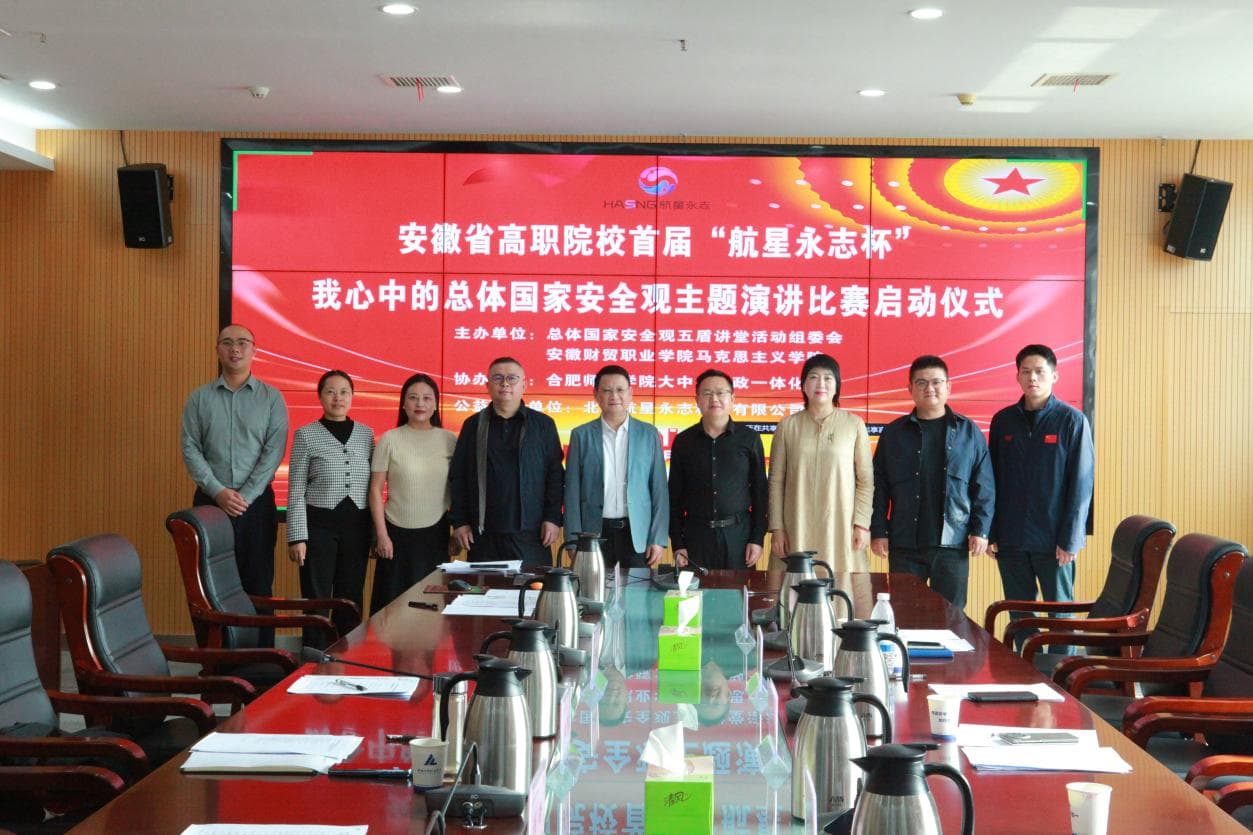 2025年10月17日下午,安徽省高职院校首届“航星永志杯”我心中的总体国家安全观主题演讲比赛启动仪式在安徽财贸职业学院隆重举行。本次活动由总体国家安全观五盾讲堂活动组委会、安徽财贸职业学院马克思主义学院联合主办,合肥师范学院大中小思政一体化平台协办,航星永志作为公益支持单位全程参与。