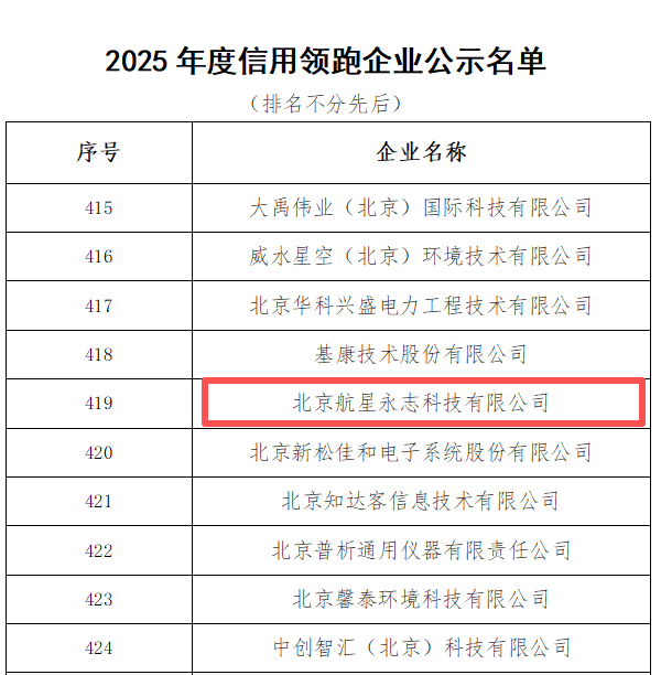 近日,北京市企业创新信用领跑企业名单正式公布。航星永志凭借在技术创新、诚信经营与可持续发展方面的卓越表现,成功再度入选该权威榜单。这是公司自2019年起,连续五年斩获此项殊荣(入选年份分别为2019年、2022年、2023年、2024年、2025年),彰显了公司在业内持续领先的创新实力与稳健可靠的信用体系。