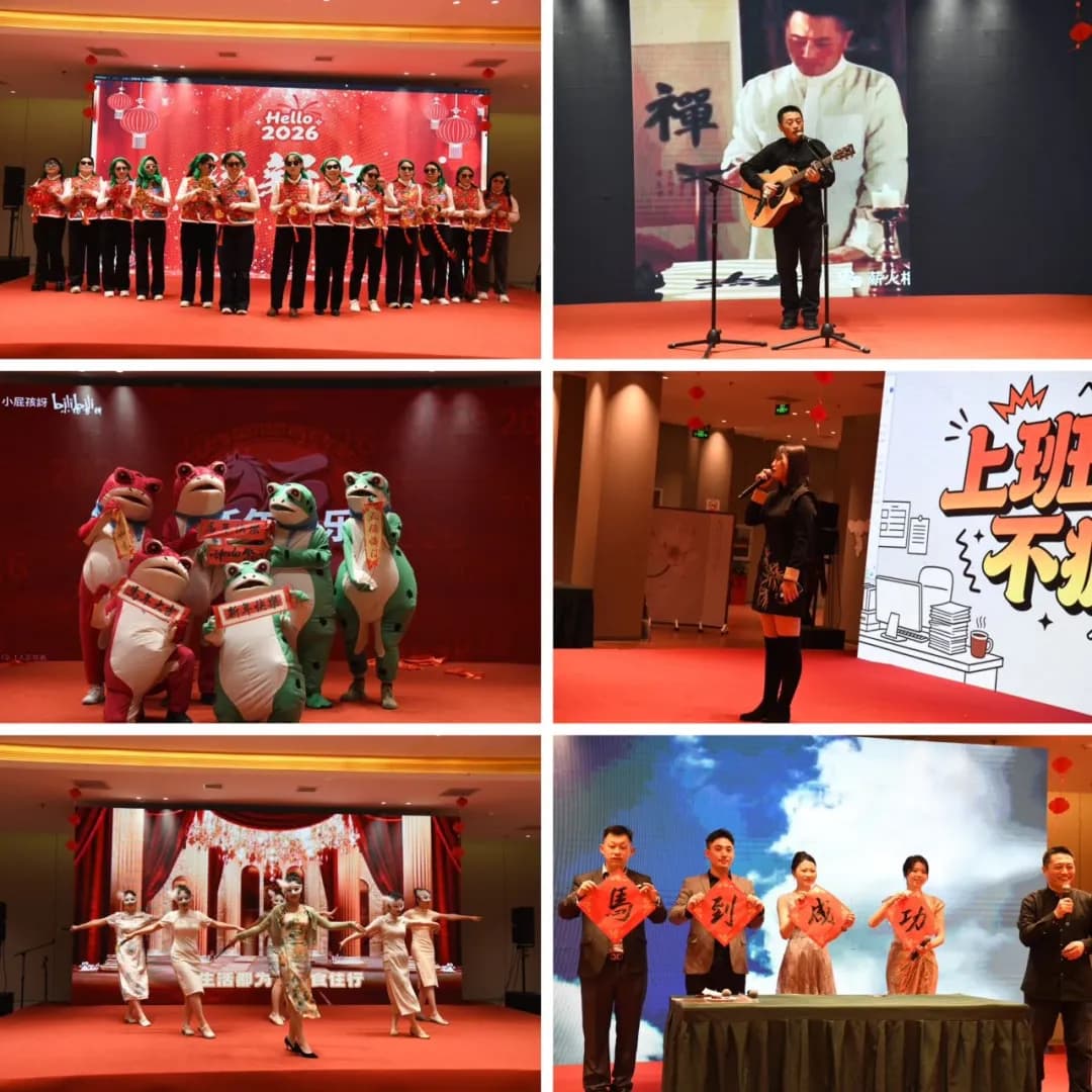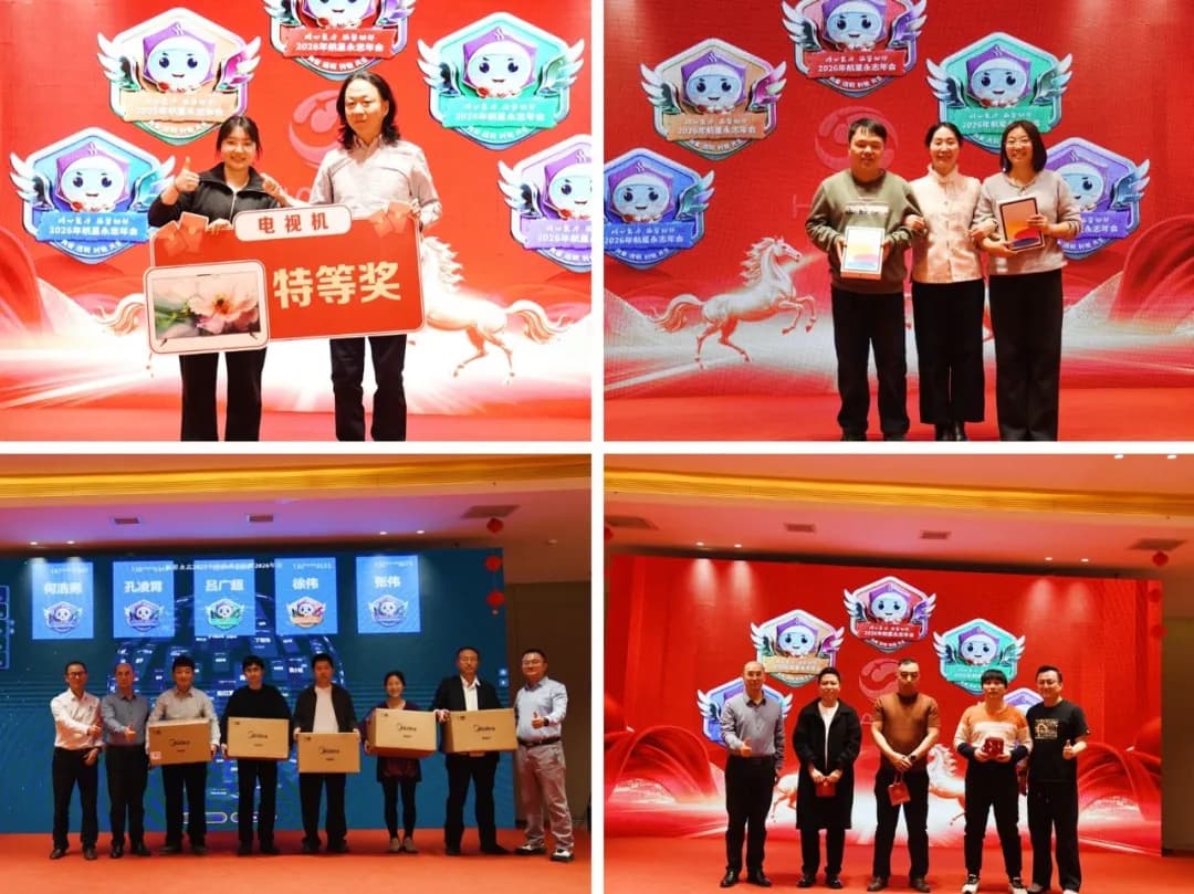 常务副总裁郭晓君围绕财务运营与战略落地,总结2025年成果、部署2026年任务,以详实数据与务实规划传递高质量发展信心,言语间满含对员工的认可与关怀。随后,总裁办领导集体上台送祝福,真挚的问候、美好的祝愿化作阵阵掌声,将现场氛围推向高潮。